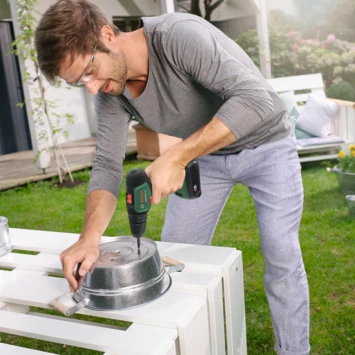 Met de accuschroefboormachine UniversalDrill 18 van Bosch bent u in één keer klaar. U haalt een krachtige en veelzijdige accuboormachine in huis. De Universal Drill 18 bevat de handzame en veelzijdige accuboormachine met twee Lithium-ion accu’s van 1.5 Ah en een 1-uurslader. Met deze schroefboormachine boort u moeiteloos in hout tot 30 mm en in metaal tot 10 mm. Door het geïntegreerde PowerLight beschikt u altijd over voldoende licht bij het schroeven en boren. De accuschroefboormachine UniversalDrill 18 van Bosch biedt u dus veel gemak en en urenlang klus comfort.