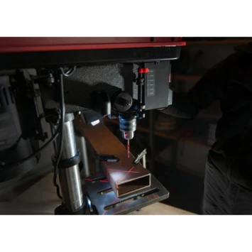 De SKIL 1360 is een kolomboormachine met een krachtige borstelloze inductiemotor van 550 W. Het gereedschap biedt een grote precisie en is, dankzij de 5 snelheden, uitermate geschikt voor het boren van schone gaten in verschillende materialen. Een kruislijnlaser geeft duidelijk de boorlocatie weer, zodat u het werkstuk precies op de juiste plek kunt positioneren. Het LED-licht zorgt voor een optimale zichtbaarheid, ook in slecht verlichte ruimtes. Een werkstuk bevestigen is een makkie met de verstelbare werktafel waar ook nog een extra bankschroef bij zit. De werktafel kan van 0° tot 45° worden gekanteld, wat betekent dat de boorhoeken ook aan te passen zijn. De SKIL 1360 heeft daarnaast een instelbare diepteaanslag voor een vooraf gedefinieerde en constante boordiepte. En het gereedschap heeft een stofdichte aan/uit-schakelaar, nog een groot pluspunt voor houtbewerkingsklussen. De SKIL 1360 AA wordt geleverd met een bankschroef en een boorkopsleutel.